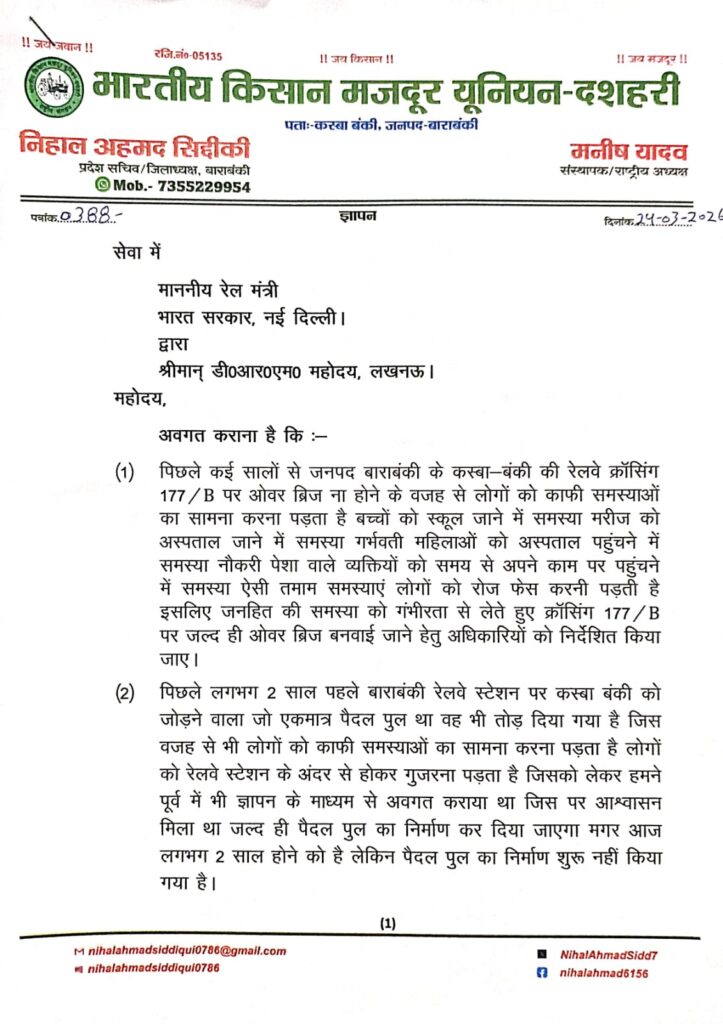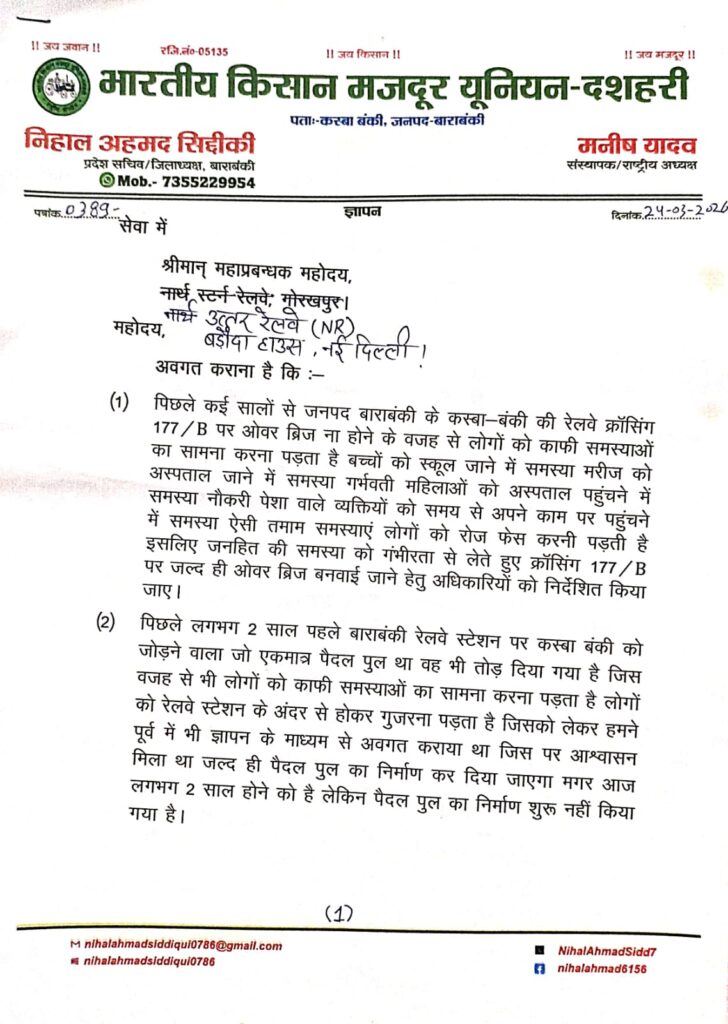 “यह सिर्फ पुल नहीं, जनता के सम्मान की लड़ाई है — और यह लड़ाई अब रुकेगी नहीं।जब भारतीय किसान मजदूर यूनियन-दशहरी बार-बार ज्ञापन देकर चेतावनी दे रही है, तो आखिर प्रशासन कब जागेगा? भारतीय संयुक्त मोर्चा फतेह बहादुर यादव राष्ट्रीय अध्यक्ष ने कहा अगर अब भी काम शुरू नहीं हुआ, तो बंकी से उठी यह चिंगारी बड़ा जनआंदोलन बन सकती है!सिद्दीकी ने स्थानीय जनप्रतिनिधियों पर भी निशाना साधते हुए कहा—“कुछ जनप्रतिनिधि जनता के मुद्दों पर भी राजनीति कर रहे हैं। ऐसे लोगों का इस बार जनता बहिष्कार करेगी।”